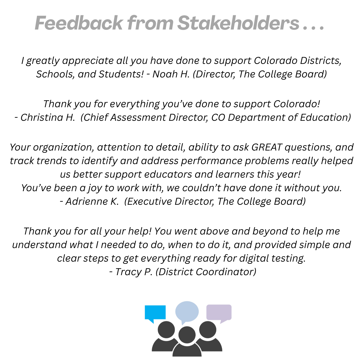 During the spring 2025 testing window, I was contracted to support the implementation of digital SAT and PSAT assessments. Building on lessons from the initial transition, I worked with team members and external stakeholders to identify and outline resources to enhance training, communication, and overall user experiences. I facilitated and/or supported virtual and in-person training sessions (individual, small & large group), created targeted job aids and task sheets to address common challenges, began the development of learner personas to inform future training strategies, and provided recommendations for ongoing improvements in learning and development practices.